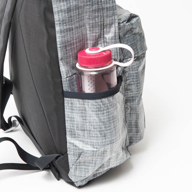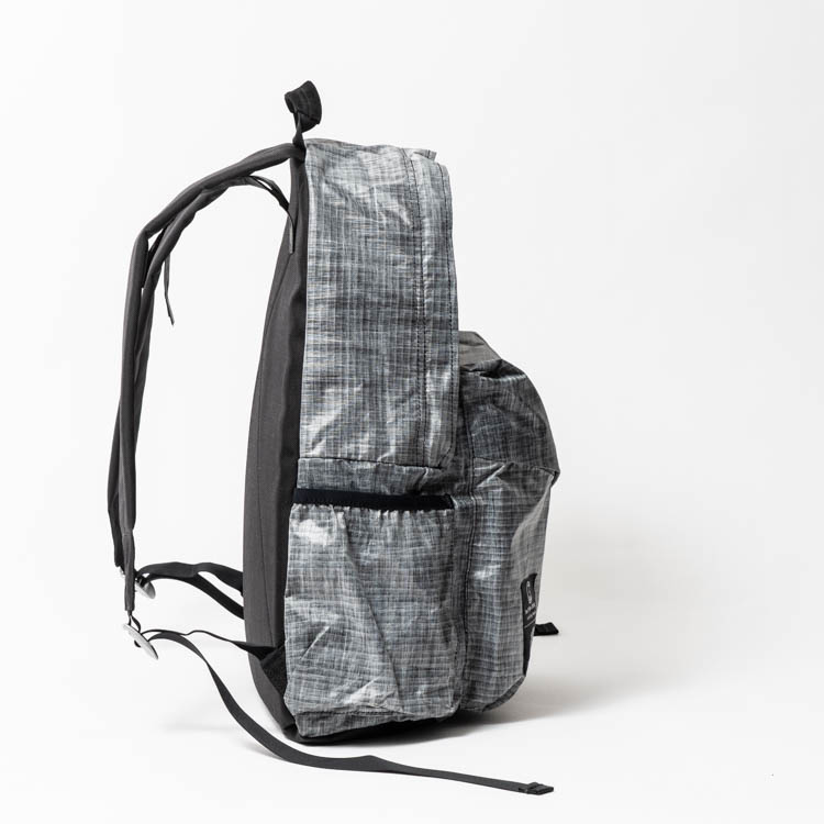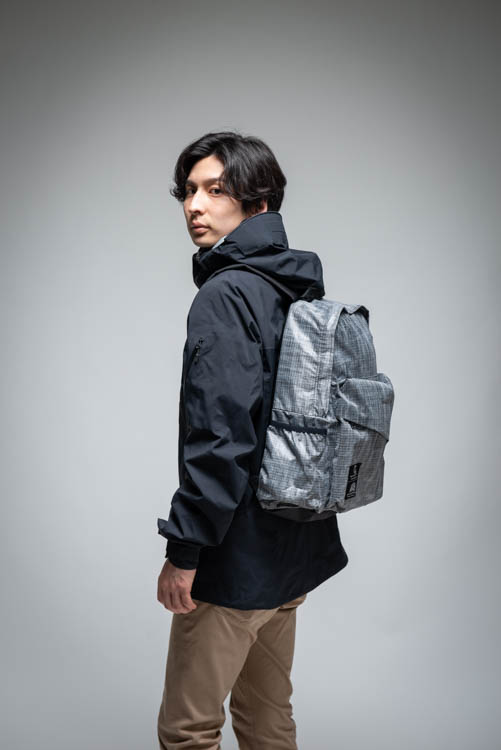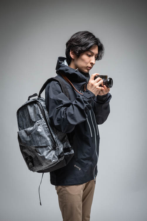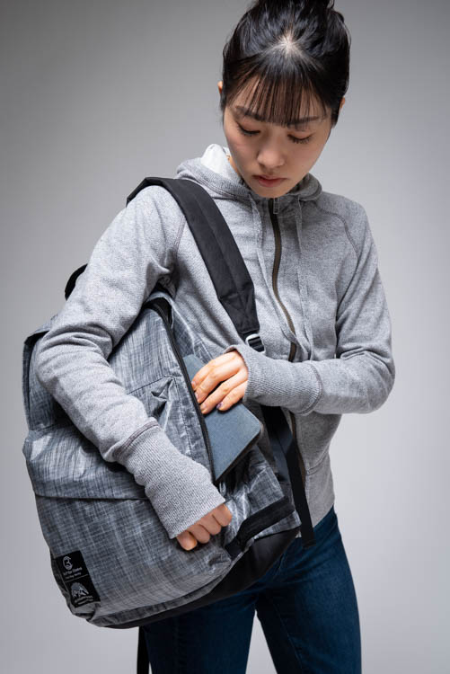 特徴的なX-PACファブリックを採用し、フットワーク軽く持ち出すことが出来るデザインに纏めた The D-Pack #001は、スタンダードなデイバッグシェイプを踏襲しながらも、重心位置や機能を工夫することにより、片肩掛けににした際や、体の前に荷物を抱え込むような状態でも快適性を保ち、アクセスしやすい左右非対称の開口部や貴重品収納部など、街中の雑踏でも、ちょっとしたアウトドアフィールドでも快適に持ち運べるよう設計されています。